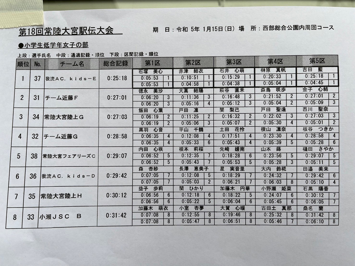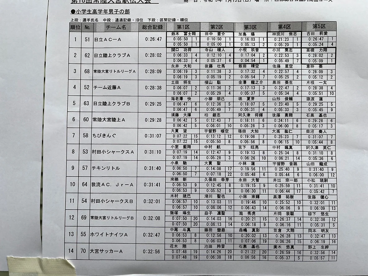 小学生低学年は全5区間(1区1500m、2~5区1200m)