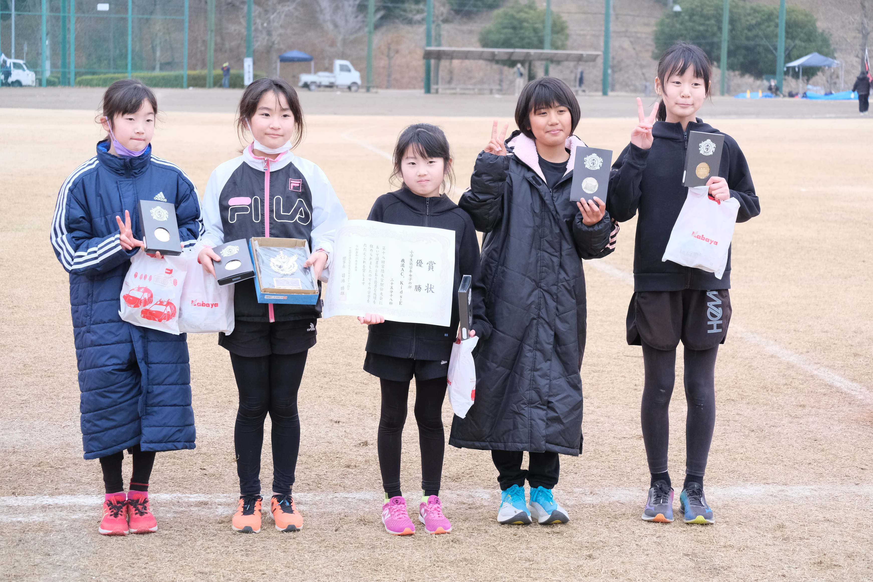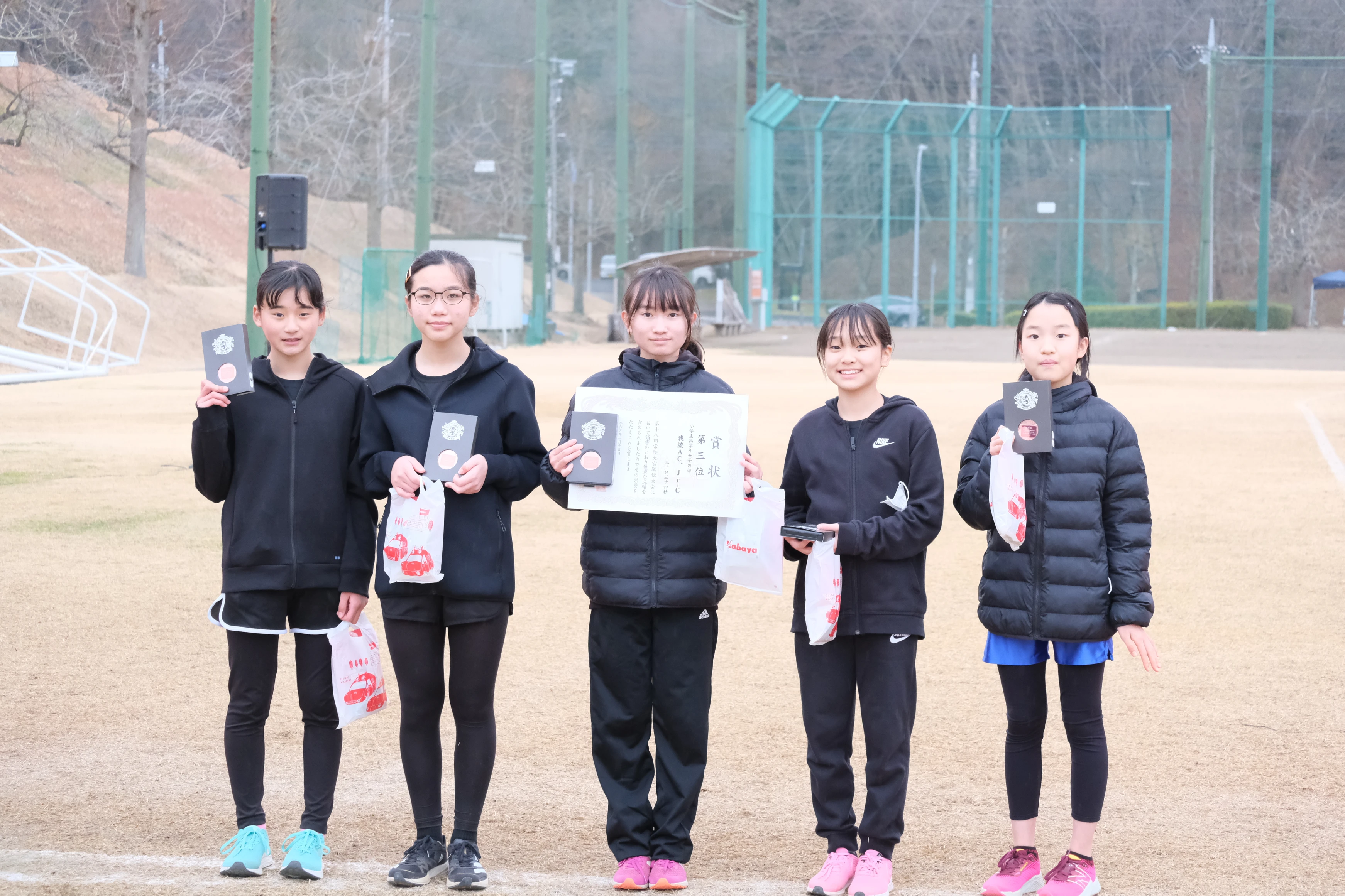 1区は我流Aが2位、中学生の我流Cが3位、我流Bが4位、我流Girlsは大森さんが2位と1分以上の大差で区間賞を取り2区へ。